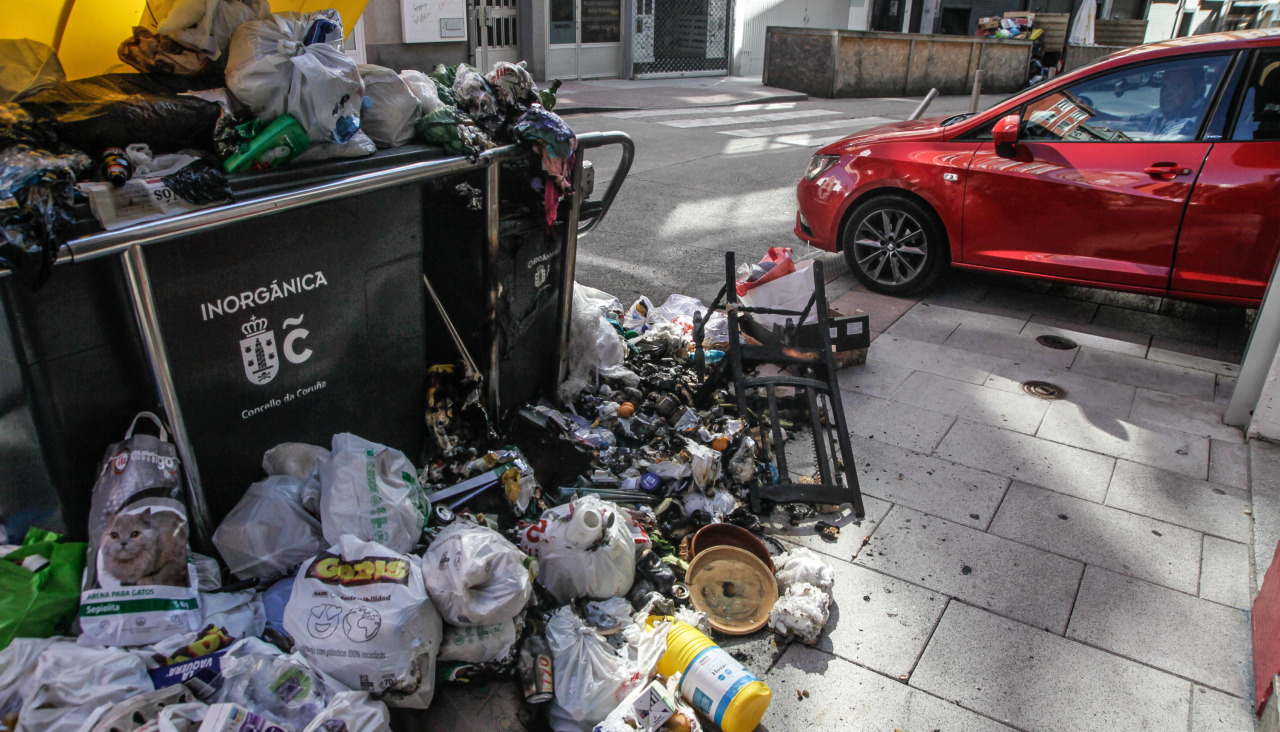 Los dos sucesos se registraron en dos zonas muy próximas. El primer avisó llegó a las 07.48 horas, cuando los efectivos de emergencia fueron informados de un incendio en un contenedor de papel en la calle de Luis Peña Novo, en O Martinete.