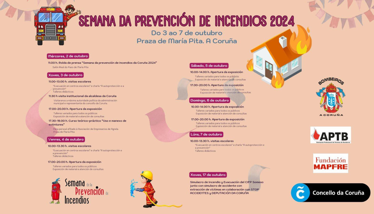 El ayuntamiento de A Coruña, la Fundación MAPFRE y la Asociación Profesional de Técnicos de bomberos en colaboración con el cuerpo de Bomberos de A Coruña inicia su programa de actividades para la celebración de la Semana de prevención de incendios 2024