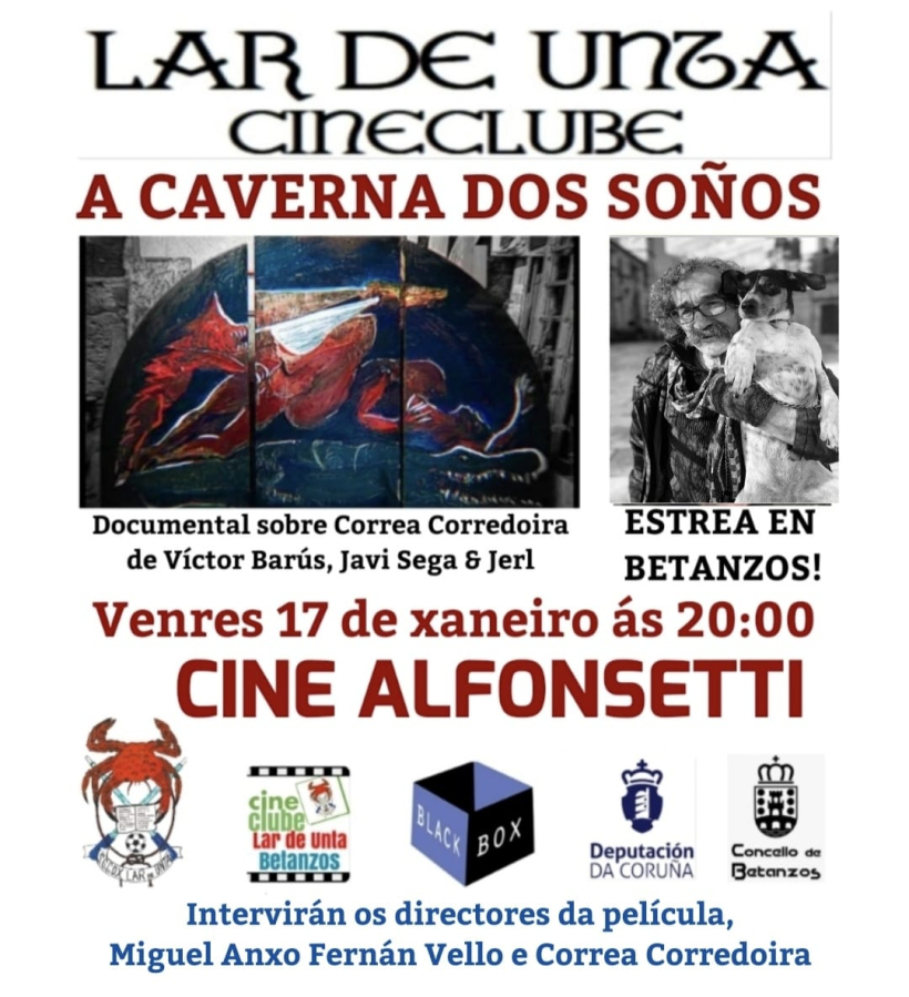 O Cine Alfonsetti acolle a proxección do documental 'A caverna dos soños' sobre o autor Correa Corredoira. Este evento contará coa presencia dos directores do documental así como coa presencia do propio Correa Corredoira. Así mesmo no coloquio participará o poeta e editor Miguel Anxo Fernán Vello. A proxección será no Cine Alfonsetti, un dos mais antigos da península.