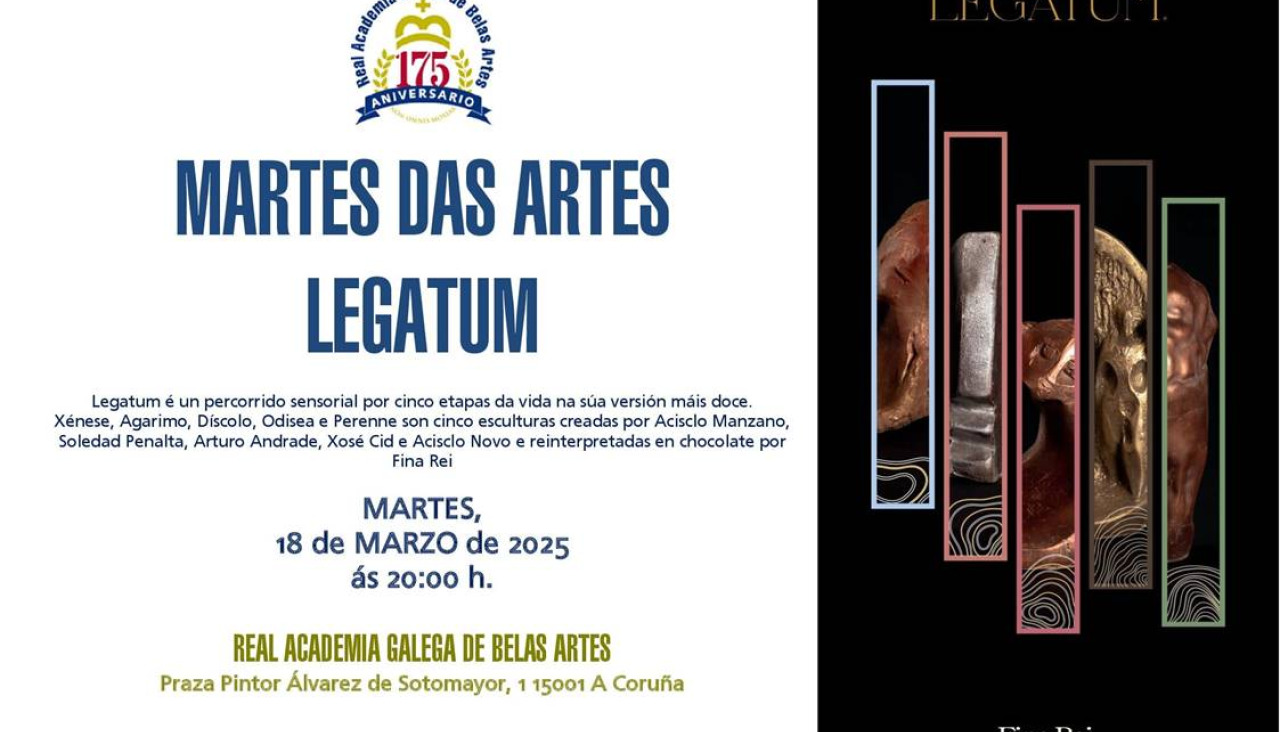 O vindeiro 18 de marzo terá lugar ás 20 horas na Academia Galega de Belas Artes a conferencia sobre o “Proxecto Legatum”, impartida polo reposteiro Miguel Ángel Mosquera Rey.