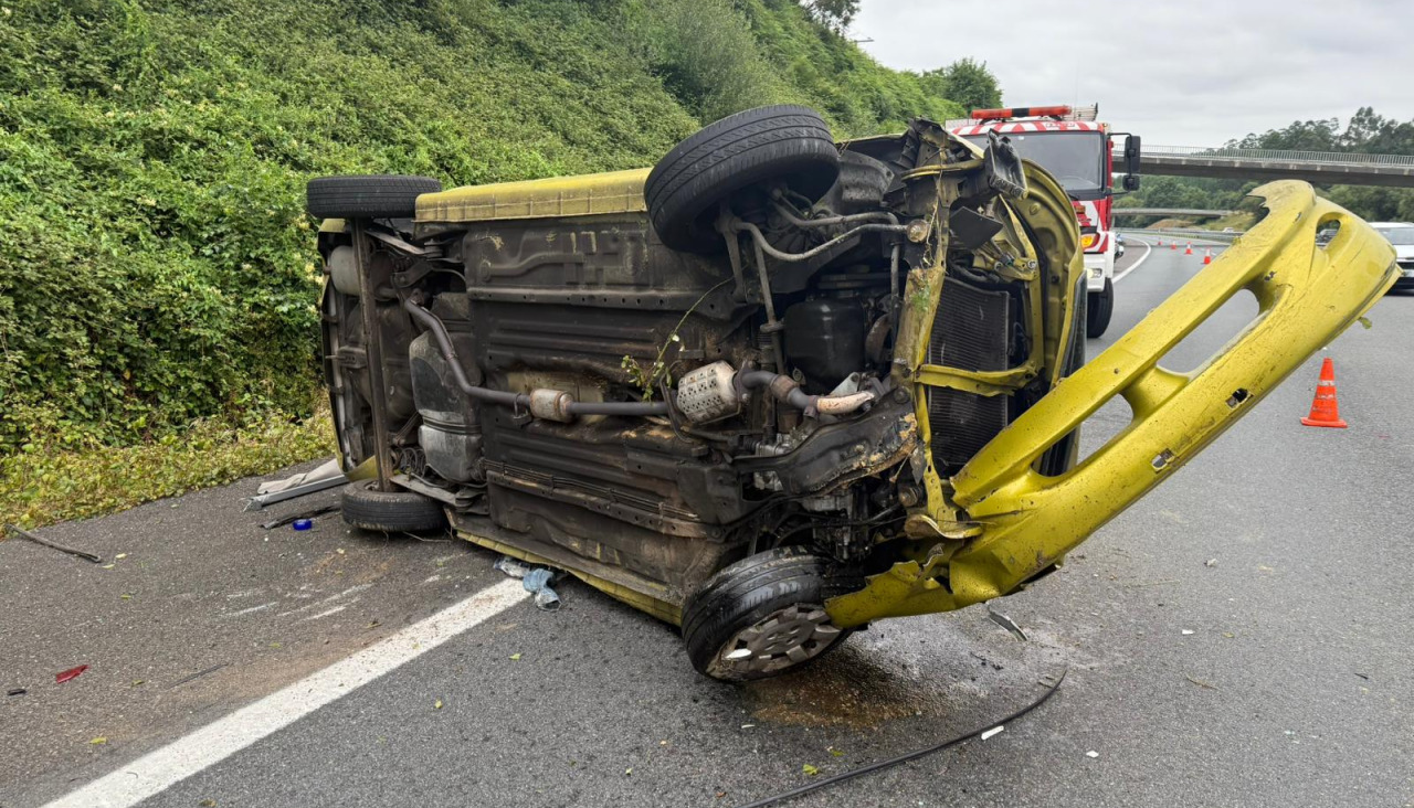 Una mujer resultó herida este sábado tras salirse de la vía y volcar con su coche en Abegondo, sobre las 18.40 horas, poco antes del puente de la autopista, en la parroquia de Cerneda.