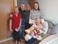 La alcaldesa de Bergondo, Alejandra Pérez Máquez, visitó a Erundina Amado García, vecina de Sanín (Lubre), para felicitarla por su centenario, que celebra este lunes, 16 de febrero de 2026, y entregarle un ramo de flores y un detalle del Concello.