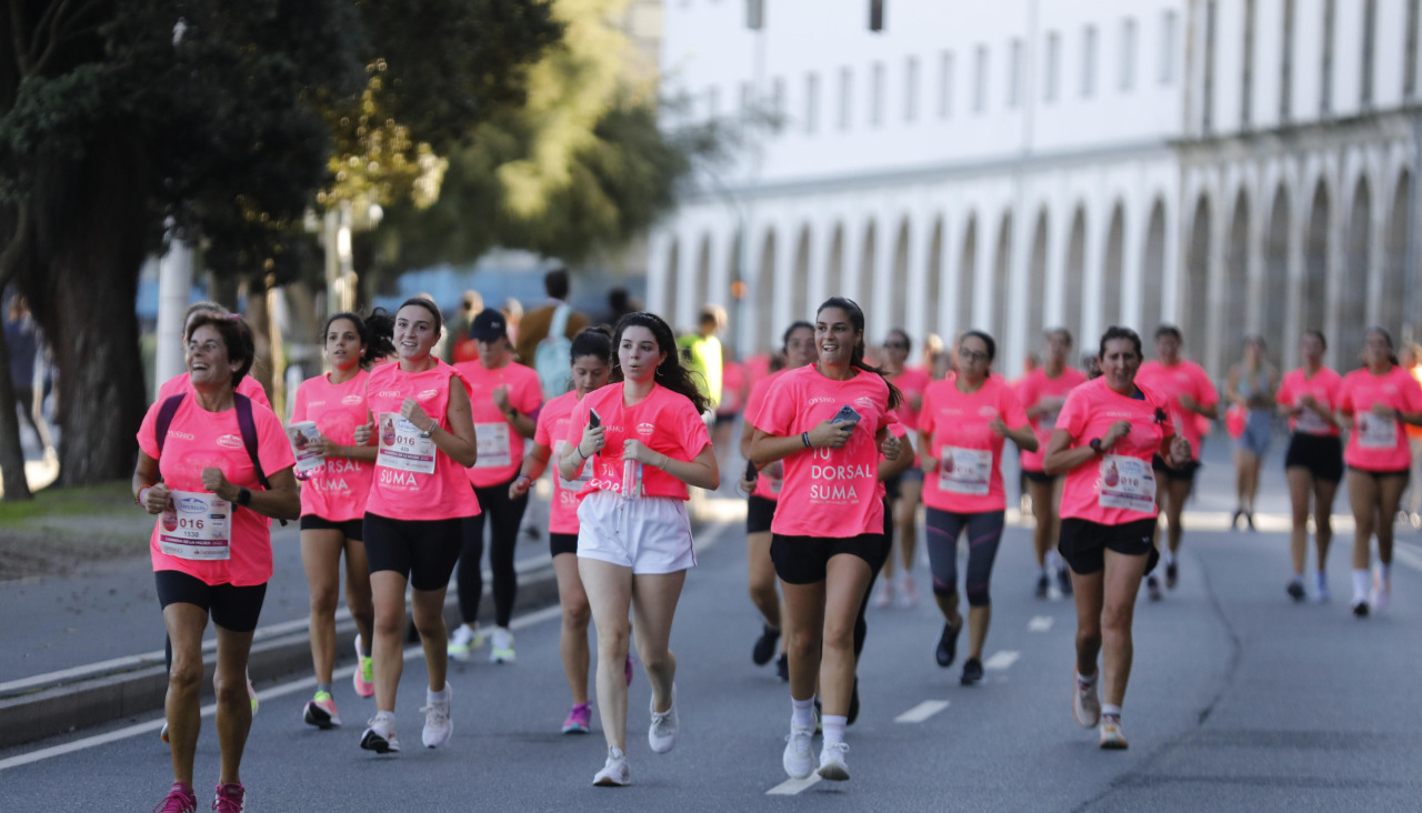 Más de 5.000 personas llenaron de rosa este domingo A Coruña al participar en la Carrera de la Mujer, que se celebró en un circuito de 6,5 kilómetros, con salida y meta junto a la explanada del Palacio de los Deportes de Riazor.