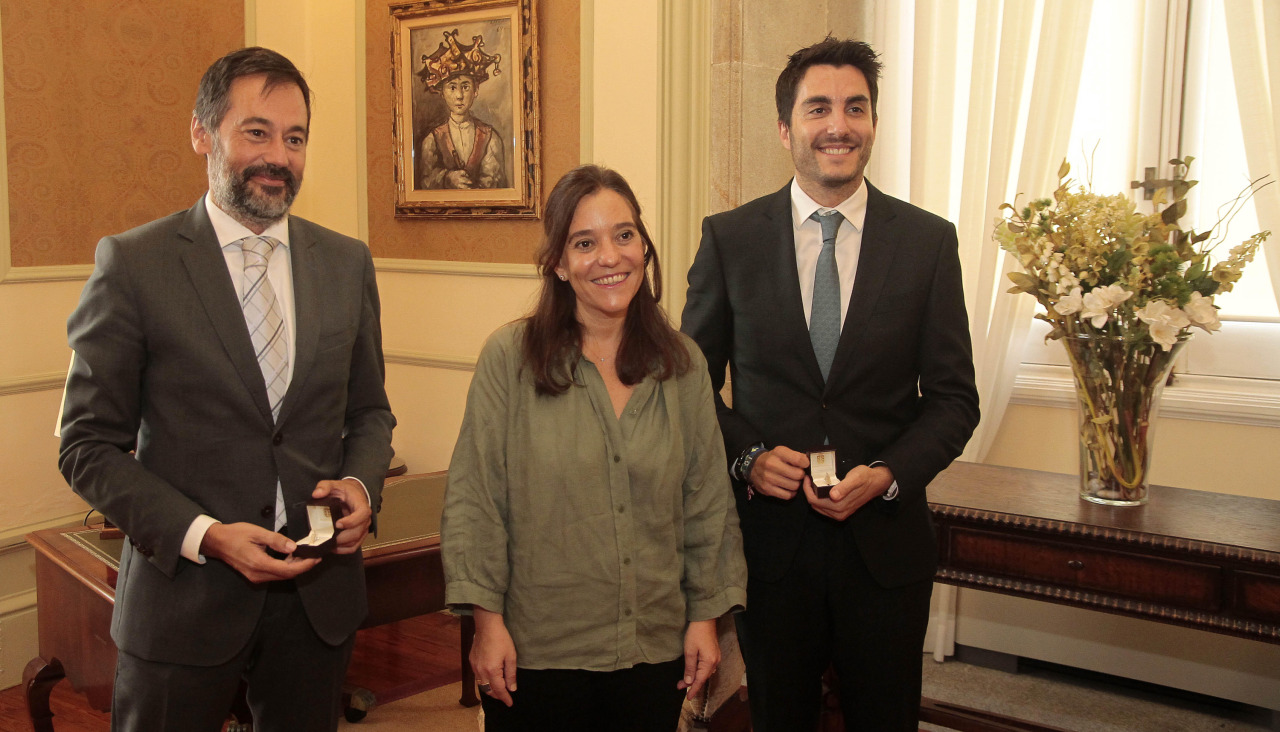 La alcaldesa de A Coruña, Inés Rey, recibió este jueves a Joan Ibáñez Ferrer (que será el nuevo director del Aeropuerto de Alvedro desde el 1 de noviembre) junto con Jesús Campo Huertas, actual director del aeródromo coruñés.