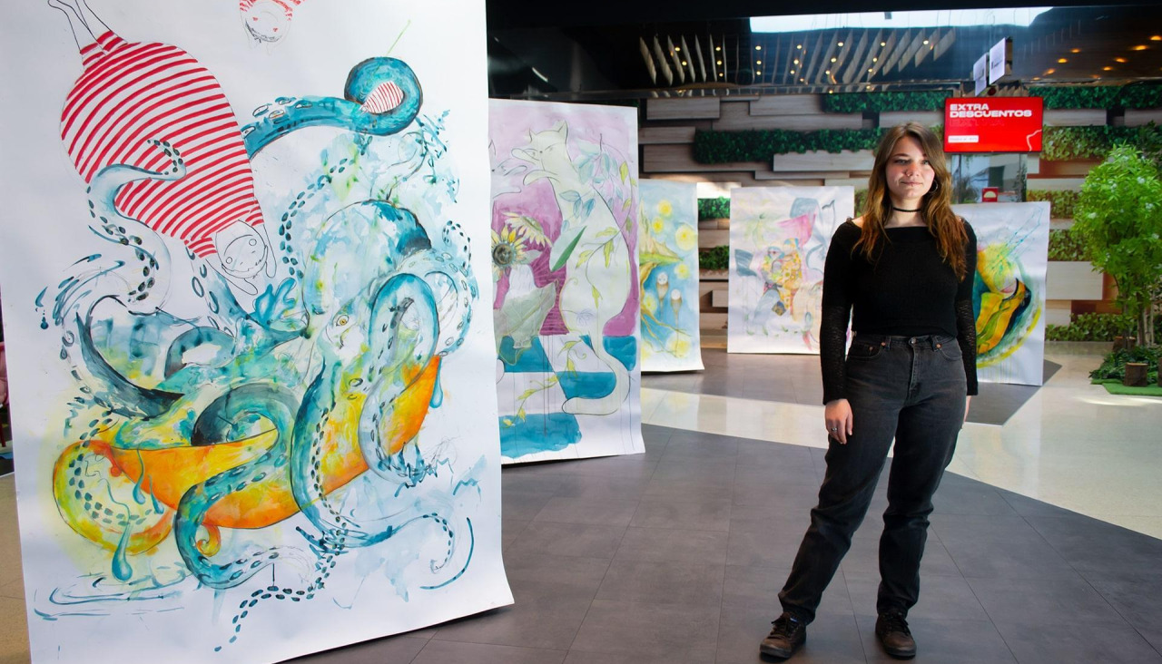 Coruña The Style Outlets estrenó esta semana una exposición artística con obras de Ana Crujeiras, alumna de grabado en la Fundación CIEC, de Betanzos.
