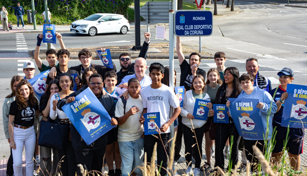 El Ayuntamiento de A Coruña ha dado este viernes un nuevo paso en la pelea por el uso del topónimo oficial de la ciudad al renombrar la Tercera Ronda como “Real Club Deportivo da Coruña”. La acción, promovida por la Concejalía de Cultura e Turismo, se enmarca dentro de la campaña “O Dépor é da Coruña”, impulsada por la plataforma ciudadana 'Aquí tamén se fala'.