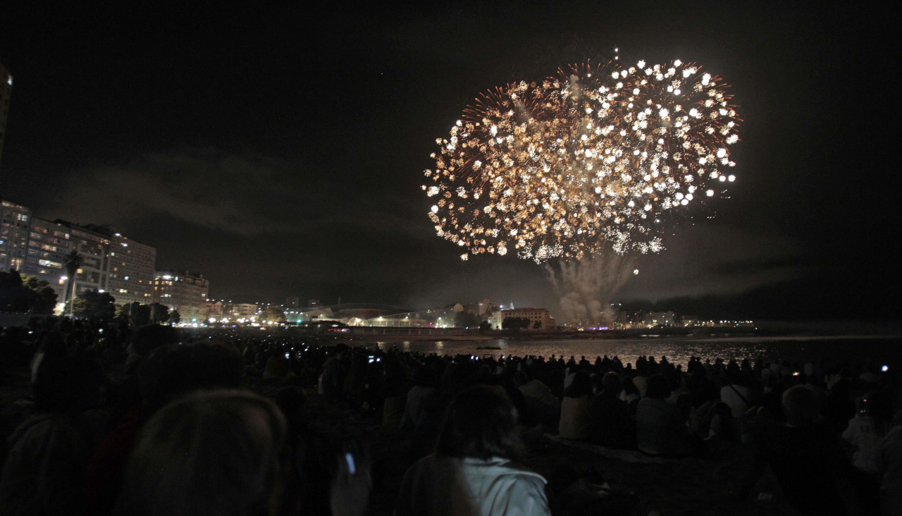 Luego pasaron unos minutos, y estalló el segundo. Se apagaron las luces del Paseo, y comenzó la exhibición. Había mucha pólvora que quemar, 700 kilos nada menos, y se hizo con estilo: columnas plateadas, anillos rojos, ramilletes azules. Los espectadores contemplaban en silencio, sin parpadear, el espectáculo que cubría de luz y de humo la había del Orzán. Las parejas abrazadas o cogidas de la mano, los niños pequeños subidos a los hombres de sus padres y muchos, hay que decirlo, a través de las pantallas de sus teléfonos móviles, para inmortalizar un momento que por su propia naturaleza, está destinado a ser fugaz.