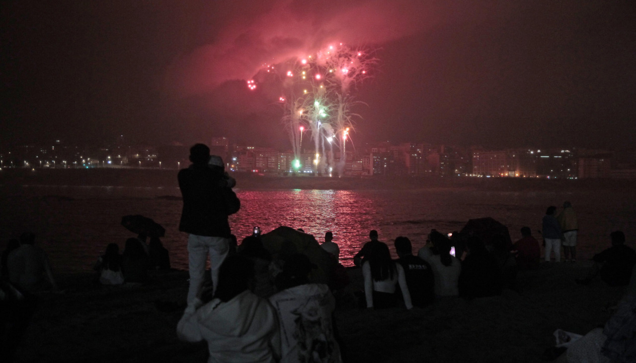 Todo el Paseo Marítimo se cortó para la ocasión, para recibir a las cerca de 90.000 personas, según fuentes municipales que, a pesar de la llovizna, habían acudido a disfrutar del espectáculo pirotécnico por excelencia de A Coruña: nada menos que 756 kilos de pólvora que estallaron con cinco minutos de antelación sobre el horario previsto en secuencias cuidadosamente programadas que hicieron retumbar el cielo y los cristales de los edificios del Paseo Marítimo.