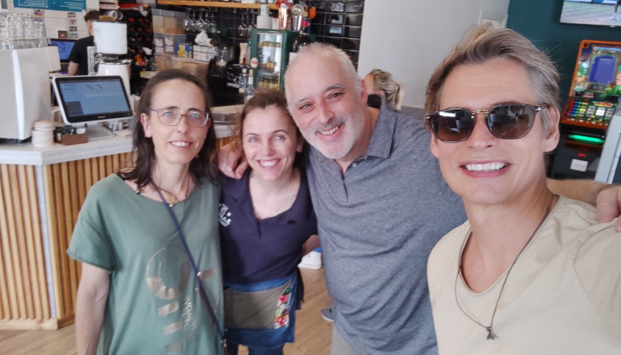 A Juan García, propetario de Mi Barrio, la noticia le llegó a través de su hijo. "Vino mi hijo pequeño a contarme que estaba Carlos Baute allí y le contesté 'vai por ahí Mateo'", reconoce el hostelero, que acabó fotografiándose con su cliente más ilustre hasta la fecha e inmortalizó el momento con una foto de familia y una dedicatoria en el libro de firmas de Mi Barrio.