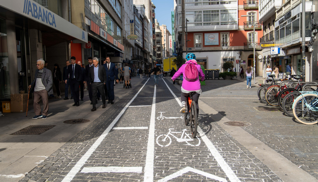 Durante mucho tiempo, la mayor parte del trazado del carril bici ha discurrido paralelo a la costa, siguiendo el Paseo Marítimo. Cuando llegó al poder la Marea Atlántica, puso en marcha el otro gran recorrido, que parte desde el puente de A Pasaxe y llega hasta el centro de la ciudad. Desde entonces, se ha ido tejiendo una red ciclable, pero no ha sido hasta ayer que por fin se ha dado el primer paso para unir las dos orillas del Atlántico en la ciudad, el Paseo Marítimo y La Marina.
