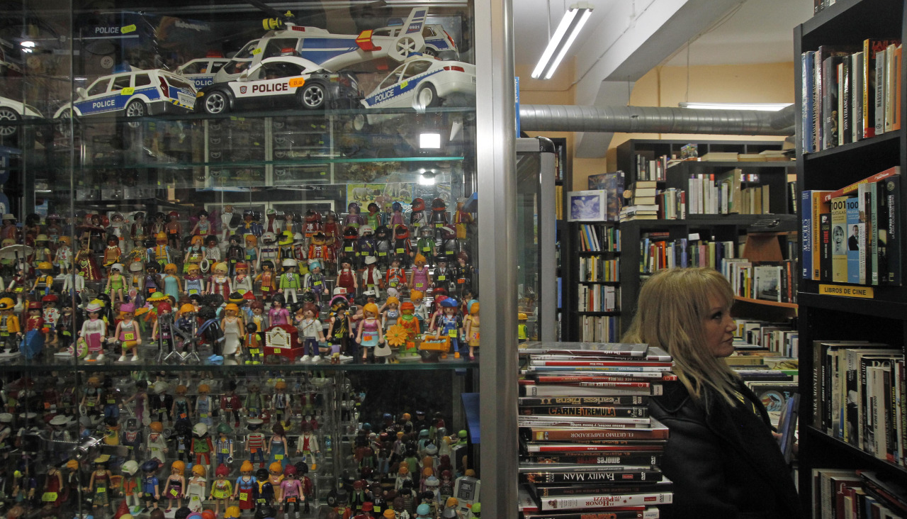 La especialidad de la casa, según explica, son los Playmobil, pero el cliente puede encontrarse con clásicos de esta clase de establecimientos como vinilos, películas y libros hasta llegar a alhajas más antiguas y valiosas –desde el punto de vista histórico– como cerámica de Sargadelos, monedas y billetes antiguos o algunos de los objetos de la segunda Guerra Mundial. Hace unos meses, narra, vendió un casco de un soldado de la Luftwaffe: “Eso fue lo más curioso que he tenido nunca”, admite.
