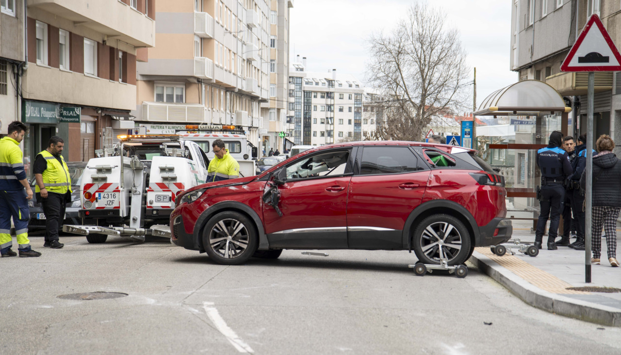 Los Bomberos de A Coruña se desplazaron con dos dotaciones hasta la zona tras recibir el aviso, junto a efectivos de la Policía Local y ambulancias del 061, para poder girar el coche y auxiliar a sus ocupantes.