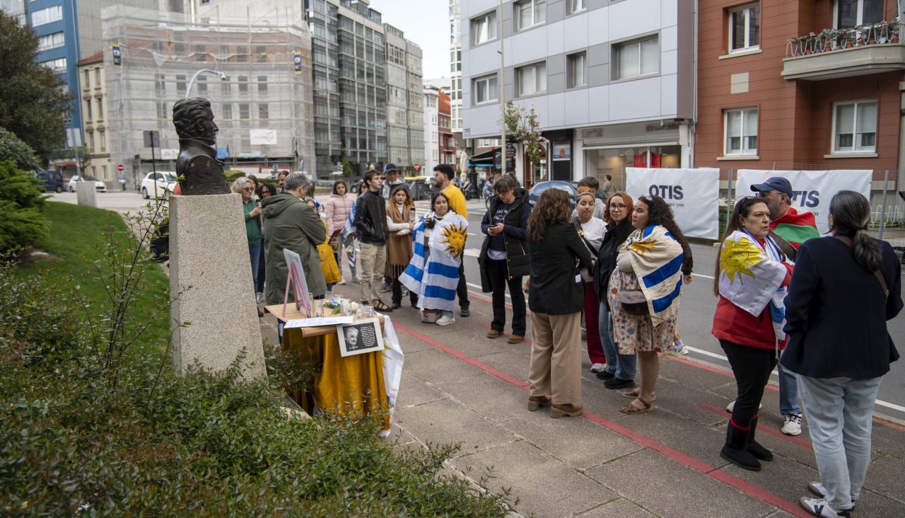 Hasta el lugar, justo al pie de la imagen de otro uruguayo ilustre, José Gervasio Artigas, se acercaron decenas de personas que quisieron de esta forma recordar al que fuera su presidente. Entre los participantes en la concentración estaba Fernando Pérez, del Consulado de Uruguay en Santiago, en representación del cónsul, que se encuentra en estos momentos en Montevideo.