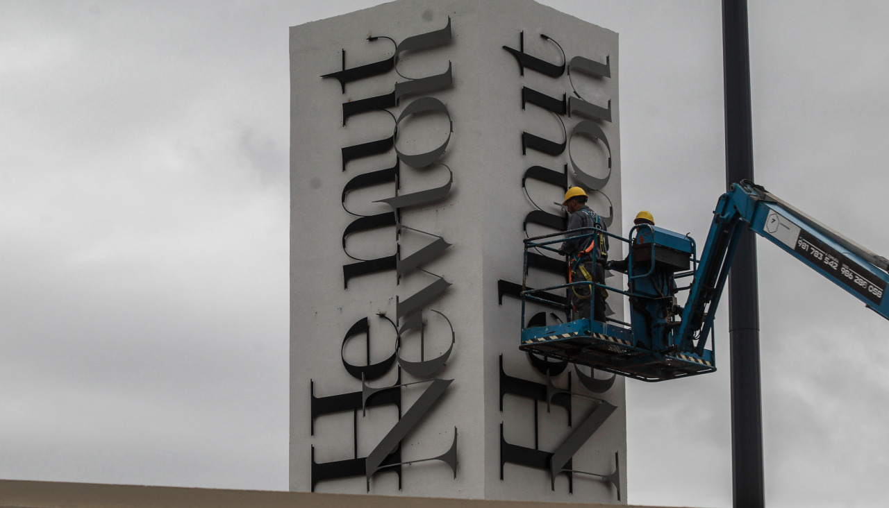 El próximo fin de semana abrirá sus puertas la exposición dedicada al fotógrafo Helmut Newton que organiza la Fundación Marta Ortega Pérez (MOP). A unos días de la apertura, las calles ya empiezan a vestir la cartelería que presenta la exposición, mientras los operarios terminan los trabajos en el enorme pilar que dará la bienvenida a los asistentes en el muelle de Batería.