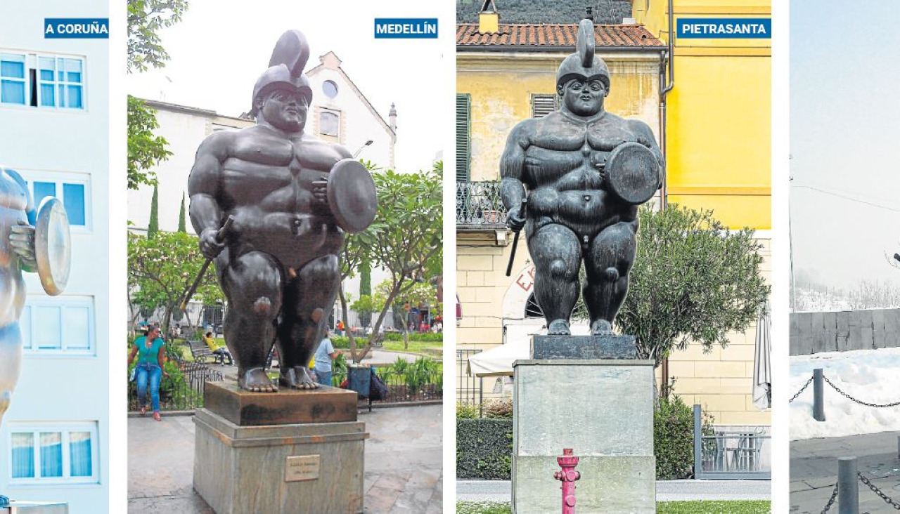 Fernando Botero Zea, hijo del escultor, confirma que la estatua forma parte de una serie: “Todas firmadas y numeradas por mi padre”. Los gemelos del guerrero romano nacionalizado coruñés se pueden encontrar en otros puntos del planeta, bastante distantes entre sí, con la ciudad coruñesa en el medio. En tres continentes distintos.