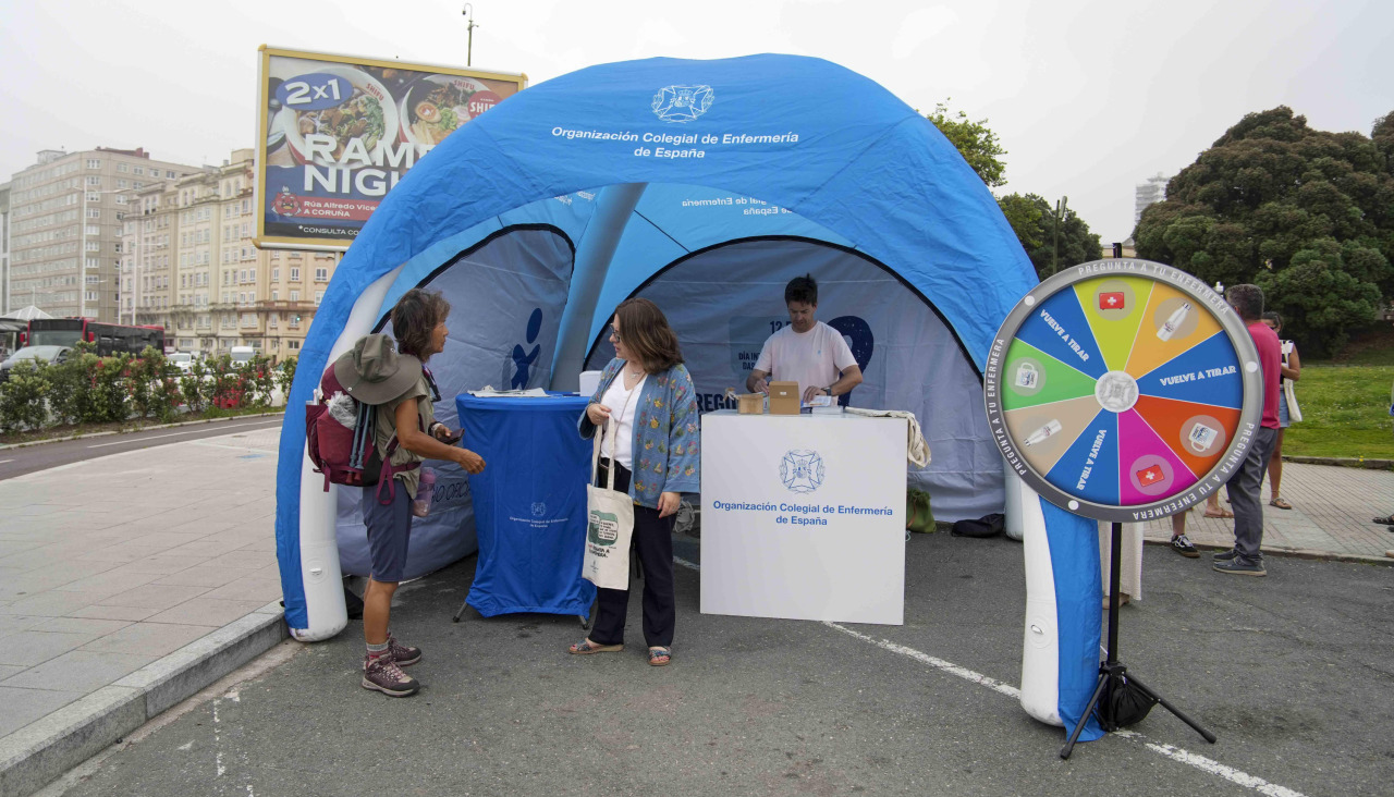 Cada 12 de mayo, la enfermería celebra su día. Pero el colectivo coruñés no pudo hacerlo hasta este lunes. La meteorología le impidió entonces conmemorar la efeméride en esa fecha con una jornada formativa en la calle, una acción que finalmente tuvo lugar hoy. La explanada del Palacio de los Deportes de Riazor se convirtió así en una ruleta de regalos e información bajo la campaña ‘Pregunta a tu enfermera’ para acercar esta figura a la ciudadanía y reivindicar su labor diaria: “Si la enfermería desapareciese, el sistema se pararía. Somos el eje que sostiene la sanidad”.