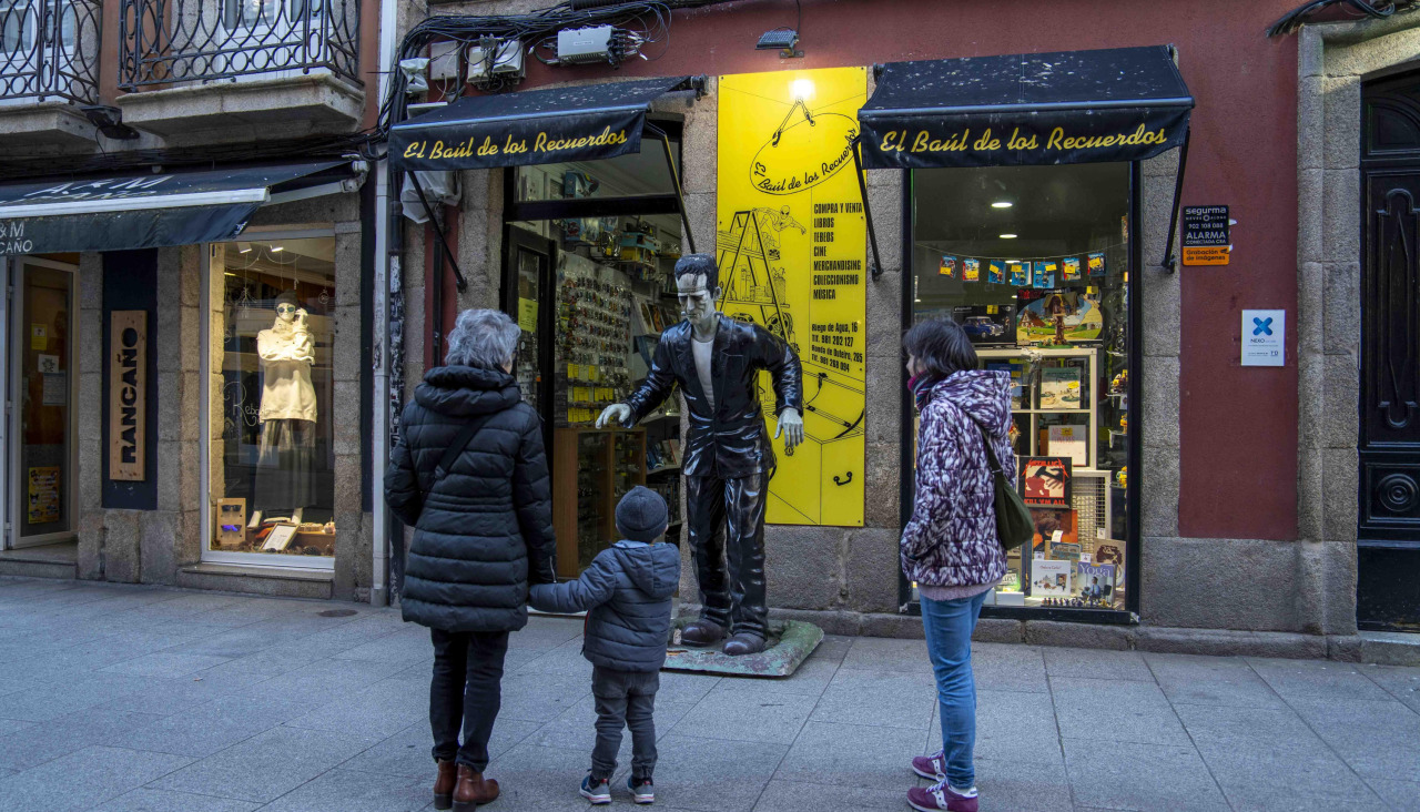 Son varias las figuras a las que podemos hacer referencia. El Baúl de los Recuerdos, que ilustra este reportaje, saca cada mañana a la calle su figura del monstruo creación de Mary Shelley. Desde hace más de una década han contado con otros elementos del mismo estilo, como Marilyn Monroe. La presencia de Frankenstein hace intuir lo que puede encontrarse en este comercio especializado en libros antiguos: historias, colecciones, ilustraciones… todo un baúl en el que perderse sin miedo, por mucho que el monstruo quiera asustar. Este negocio es un ejemplo, pero hay más: