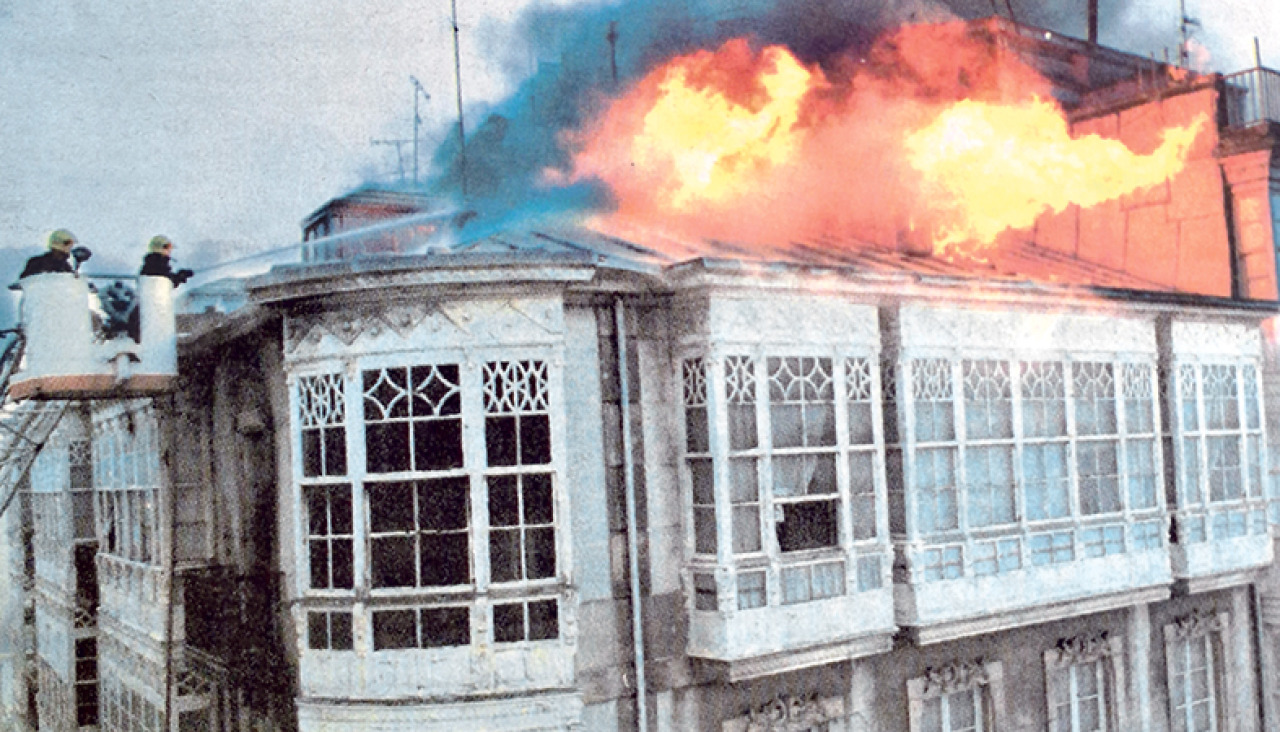 Sin heridos se saldó el espectacular incendio que hace 25 años destruyó el último piso del número 3-5 de Riego de Agua. Se originó sobre las cinco de la tarde, pero los bomberos no consiguieron apagarlo hasta las diez de la noche. Cientos de personas que paseaban por el centro se detuvieron a seguir las evoluciones del operativo, que obligó a desalojar a unas cincuenta personas de tres edificios. Hace 50 años, tal día como hoy de 1975, El Ideal Gallego informaba de los nuevos horarios de apertura de los cines, los teatros y los diferentes locales de hostelería. En 1950, hace 75 años, varios jóvenes causaban destrozos en el bar El Bolichero, en el Agra do Orzán, y en 1925, hace 100, se reunía en el Gobierno Civil la brigada sanitaria.
