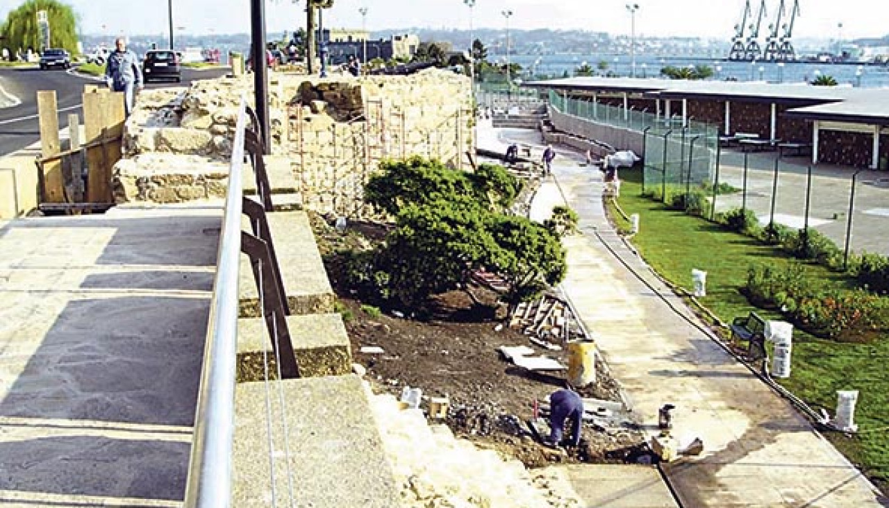 La empresa Necso, que se encarga de las obras de rehabilitación de las murallas de la ciudad, comenzó a instalar ayer, 20 de marzo de 2000, el mobiliario urbano del sendero peatonal que comunicará el hotel Finisterre con la entrada del castillo de San Antón. Además de los bancos se están colocando papeleras con un diseño similar a las que existen a lo largo del Paseo Marítimo de la dársena del puerto, así como farolas y una barandilla.