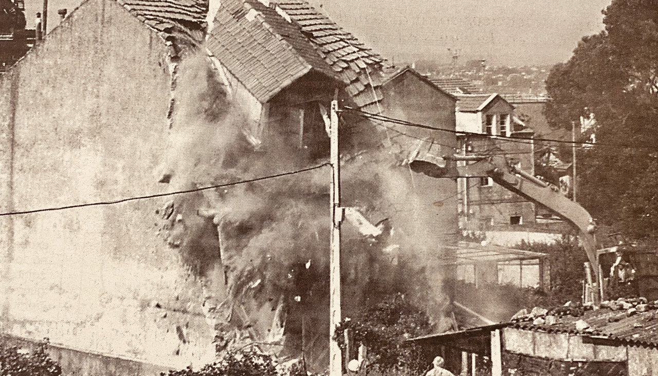 El lugar de San Diego, ocupado por un centenar de familias en los primeros años de este siglo, ha pasado a la historia. De certificar la muerte de este otrora bullicioso barrio se encargaron los empleados de la emprsa Obras Coruña ("descorchadores de tapones con solera", señala uno de sus responsables), que a las dos de la tarde se pusieron manos a la idem, derribando con una exacavadora el inmueble de bajo y dos plantas ubicado al lado de la calle Vales Villamarín. El propietario de la taberna As Cañas, Pepe Miragaya, se pegó un garbeo por la zona y entró en su expropiado negocio antes de que Obras Coruña echara sobre él las fauces de la grúa. "La puerta la dejo abierta porque ya no vale la pena cerrarla", manifestó el pequeño empresario, que ya habita una vivienda en Vales Villamarín. Desde hace cinco días, sólo los perros de Matilde Figueroa habitan en el futuro parque. El Ayuntamiento ha decidido prorrogar la estancia de los canes y las visitas de Matilde y sus empleados a la zona para dar tiempo a la anciana a que termine de construir el nuevo hogar de los chuchos en un recóndito paraje del municipio de Culleredo.