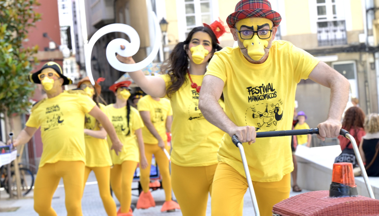 Los ‘patiños’ del festival Manicómicos dieron el pistoletazo de salida a la edición número 22 del evento. Lo hicieron en el entorno de la plaza del Humor, donde animaron la mañana a los paseantes, así como a los clientes del mercado de San Agustín, hasta el cual se trasladaron durante el transcurso del pasacalles.