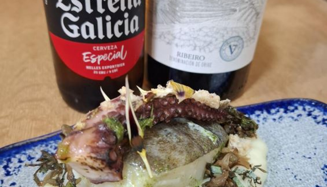 Maridado con cerveza Estrella Galicia o vino Finca Viñoa.