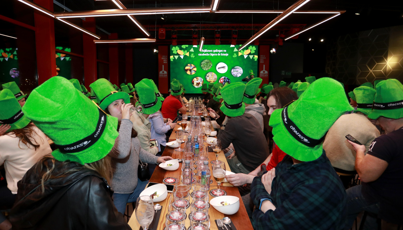 Eso de la relación entre A Coruña e Irlanda alcanza cotas de mimetización sin tener que recurrir a la IA. Y es que el museo Mega dio el pistoletazo de salida a las celebraciones de San Patricio convertido en una taberna cualquiera de Dublín sin que faltase detalle alguno. Mejor dicho, cualquiera no, pues tras los fogones de la cena de hermandad estaba Álvaro Victoriano, presidente de Coruña Cocina y fundador del grupo Peculiar. Más de 80 asistentes se deleitaron con un menú “para jugar con la cerveza”, y en el que se evidenció el creciente reclamo del patrón de Irlanda en A Coruña.