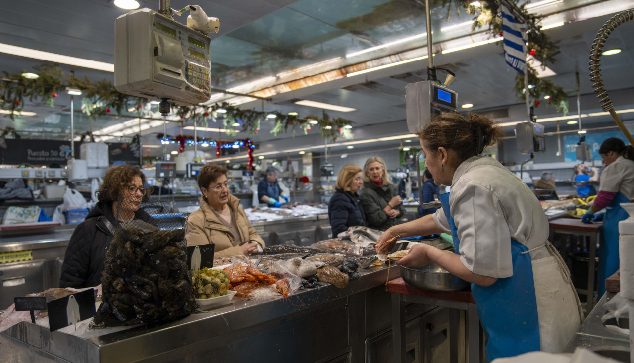 Óscar, de Pescadería Nortemar, y Víctor, de Pescadería Víctor, comparten la opinión de su compañera de mercado. “Algunos te dejan 300 euros, otros 500, depende de la gente que sea. Pero la media es esa”. El balance, por lo tanto, es positivo: “No hay queja”, sostiene Víctor. Para mañana, lunes, las ventas no han estado tan animadas, y es que, tal y como dicen los placeros, “la gente el 6 de enero come fuera”.