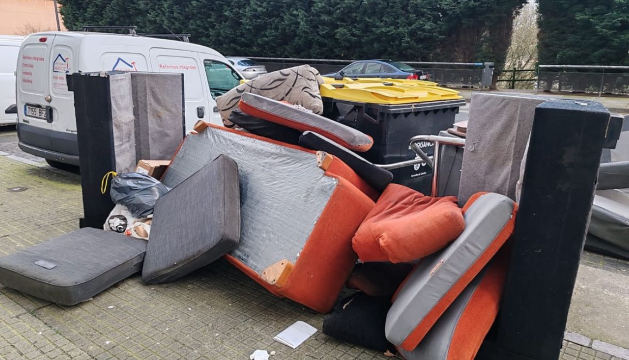 Que Novo Mesoiro es un barrio solidario parece habérselo tomado demasiado a pecho algún vecino que ha decidido tirar la casa por la ventana, prácticamente en el sentido más estricto, y plantar todo lo que le sobraba en medio de la calle Ribeira Sacra. Ese problema, que se conoce como voluminosos por motivos evidentes, parecía superado en prácticamente toda la ciudad. Pero todo vuelve, hasta los pantalones de campana.