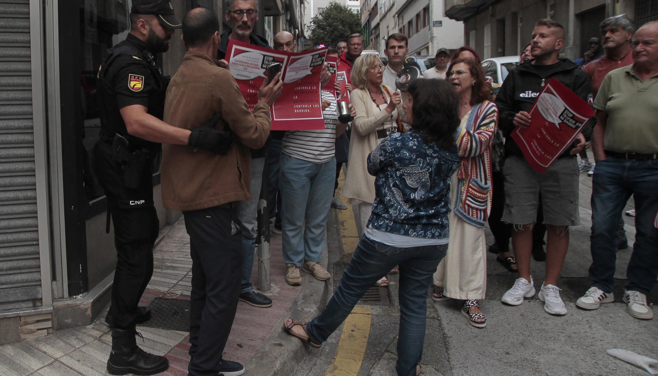 Un presunto "toxicómano" se mofa de los manifestantes del Agra do Orzán y es separado por la Policía