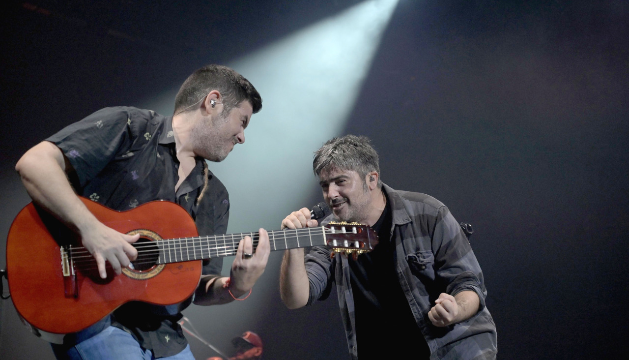El concierto de Estopa podría definirse con dos palabras: simple y efectivo. A David y José no les hace falta más que una guitarra para conectar con el público. Lejos de recursos estéticos, grandes producciones o propuestas arriesgadas, sus letras y su simpatía son sus mejores aliadas. Aun así, un escenario que simulaba un gran andamio de obra y una hormigonera con el rótulo ‘Hermanos Muñoz’ que se encargó de derribarlo fueron el punto de partida de una noche en la que el Coliseum se venía abajo cada vez que sonaban los primeros acordes de una nueva canción.