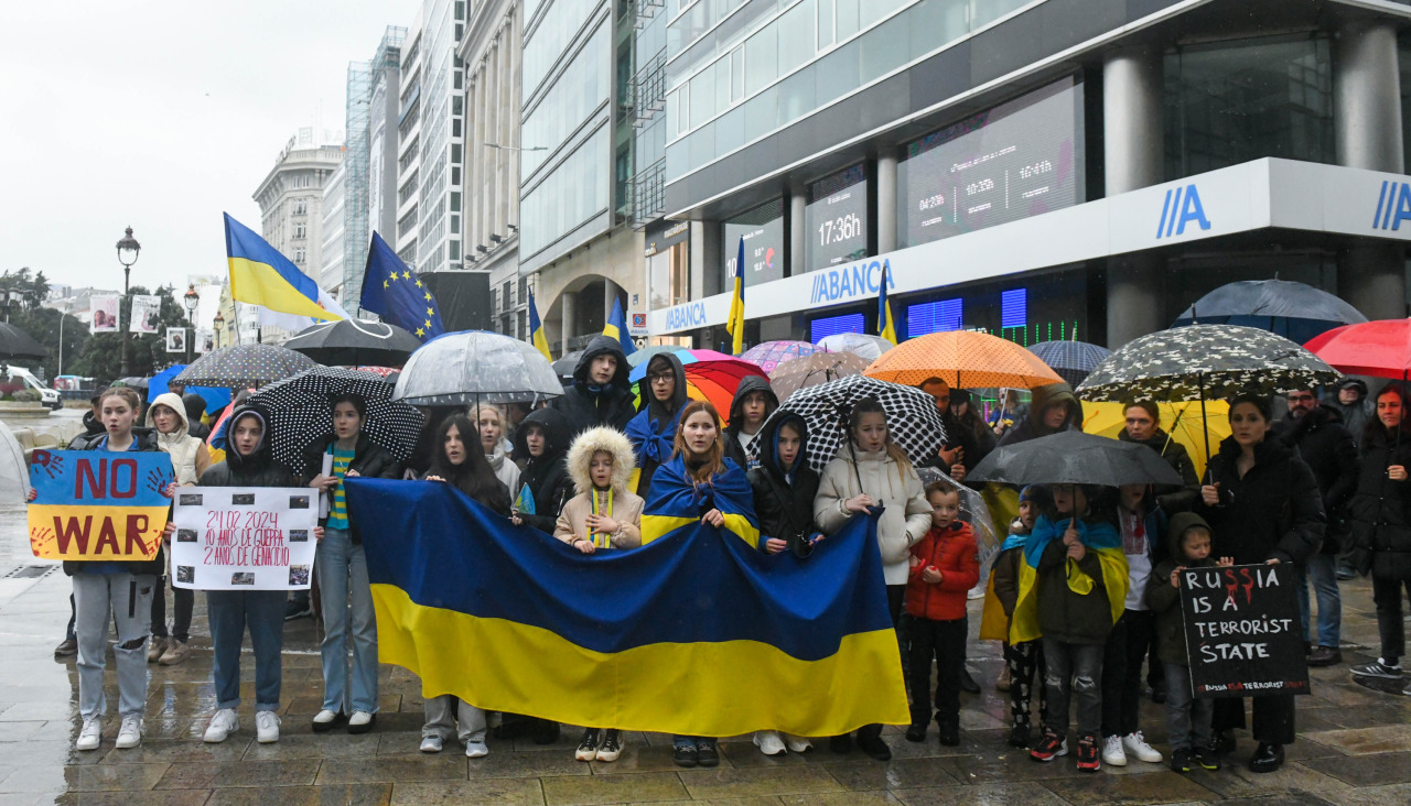Al igual que todos los sábados desde hace dos años, Aga-Ucraína se reunió ayer en señal de protesta por la invasión rusa iniciada el 22 de febrero de 2022. Ante el aniversario de este suceso, la asociación realizó una marcha a la que acudieron unas 100 personas aproximadamente.
