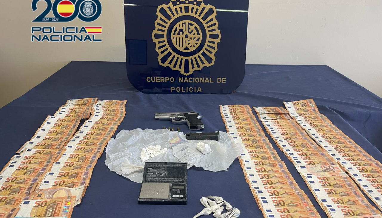 Como resultado de este registro, se procedió a la incautación de varias dosis de cocaína dispuestas para la venta y una piedra (70 gramos en total), más de 6.000 euros en efectivo procedentes de la venta de la droga y una pistola de fogueo.