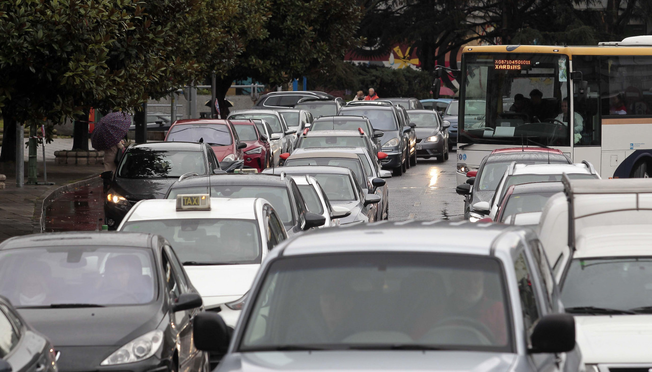 La Policía Local mantiene un dispositivo de vigilancia de tráfico, que también incluye la plaza de Lugo, cuyo parking también llegó a rebosar. No es la primera vez en estas fiestas que se registra una jornada de tráfico complicada, pero hasta ahora el tiempo se mantenía seco.