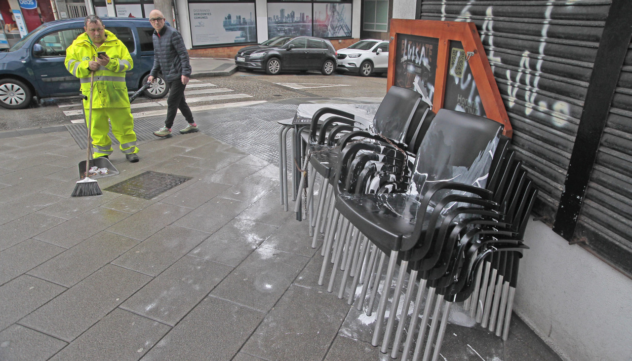 Afortunadamente, el servicio de limpieza del Ayuntamiento acudió inmediatamente, al tratarse de una pintada de carácter ofensivo y comenzaron a retirar toda la pintura, que se había acumulado en las sillas y mesas. “Me dicen que no es una simple pintada”, comenta la afectada.
