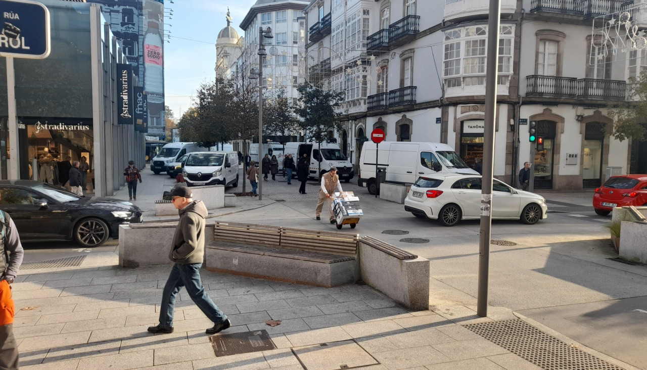 No es un fenómeno exclusivo de la plaza de Lugo, aunque sea más evidente en la principal zona comercial de A Coruña. La calle Real, que pasa por ser la segunda, también tiene que soportar mucho tránsito, lo que puede generar problemas de circulación en un momento dado, sobre todo si las furgonetas se detienen en puntos especialmente estrechos de la calle o donde se están llevando a cabo obras.