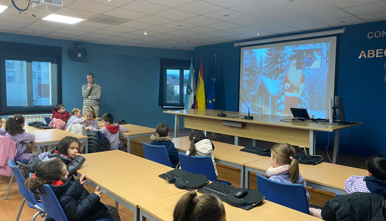 El Concello de Abegondo abrió su programa de actividades de Navidad, como es habitual, con la videoconferencia con Papá Noel celebrada en el Aula Cemit. Los pequeños y pequeñas de 5 años del CEIP San Marcos se desplazaron hasta la casa consistorial para conectar con directamente con Laponia.