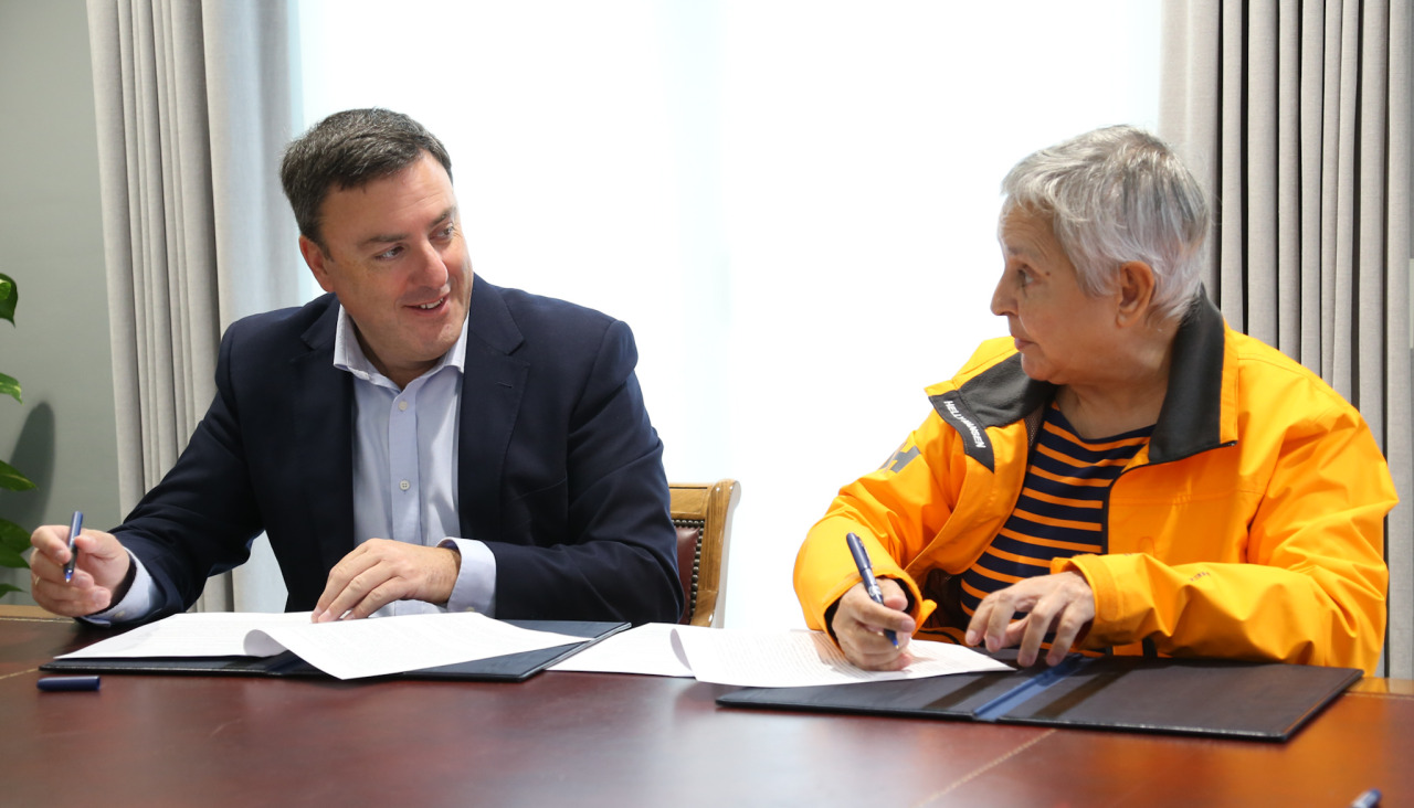 El presidente de la Diputación de A Coruña, Valentín González Formoso, y la presidenta de la Asociación Protectora de Animales Gatocan, María Beatriz Martín Catoira, firmaron el convenio para la financiación de las obras de ampliación del refugio de animales domésticos que la entidad tiene en el lugar de Figueiras, en el municipio de Coirós.