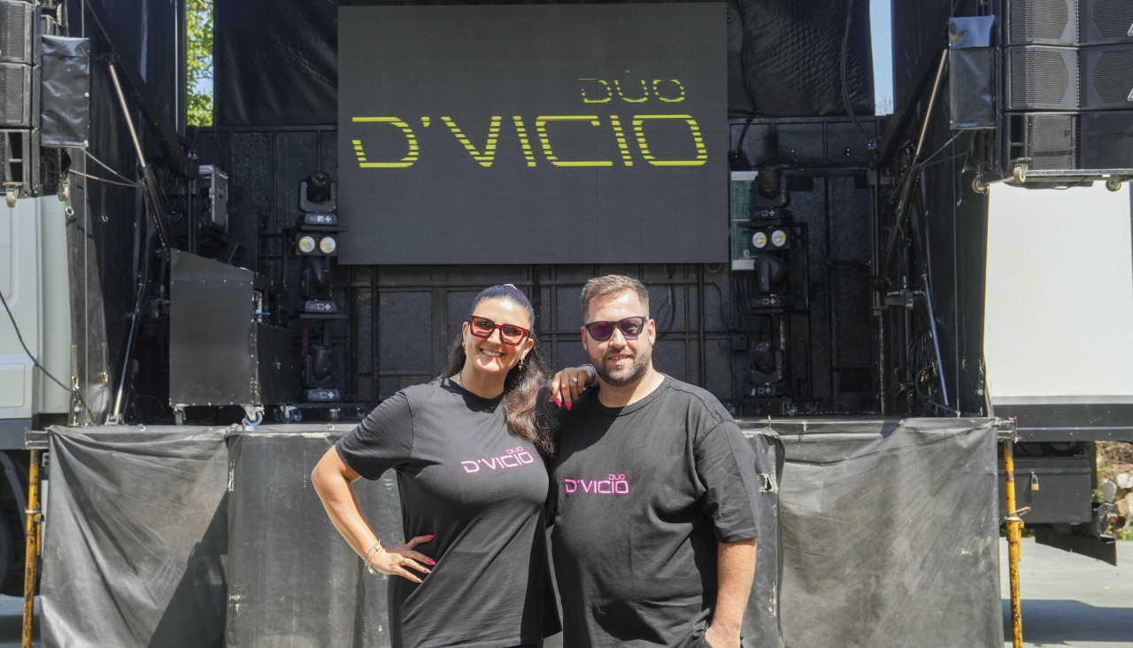 Van a actuación por día y algunos incluso hacen ‘doblete’ –sesión vermú y verbena–. El dúo D’Vicio, formado por Alejandro Fiuza –natural de Almeiras (Culleredo)– y Lucía Miguens –de Vilagarcía y afincada en A Baña–, es un habitual en el área metropolitana coruñesa desde 2019 y raro es no verlo en los carteles de fiestas. Su secreto, explican, un repertorio fresco y una puesta en escena diferente a la de otros, con un escenario móvil de dimensiones considerables.