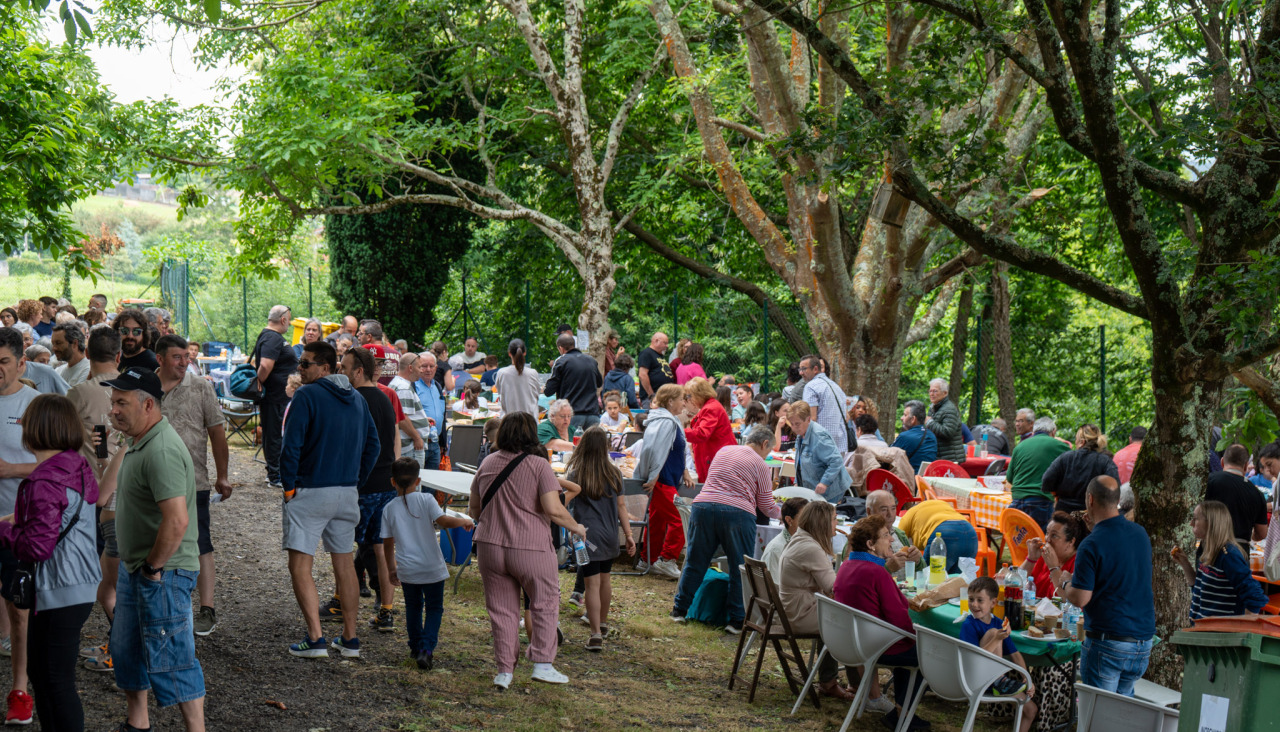 Todos se trasladaron a la zona del monte sobre las dos del mediodía para la comida. A esa hora comieron los niños de Educación Infantil y Primaria y, al terminar, lo hizo el alumnado de ESO y los adultos. Para facilitar el traslado de la comida y la comodidad, se permitió el acceso de vehículos a la zona del monte de 9.00 a 11.00.