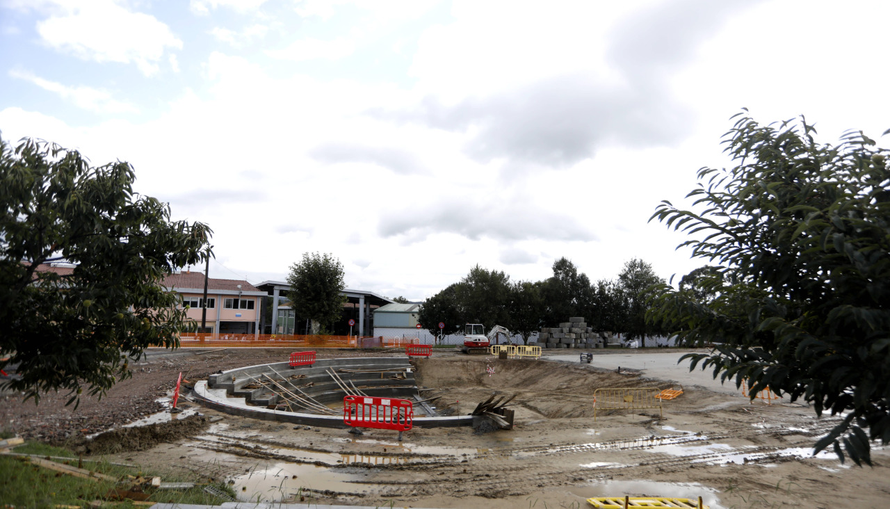 Lo que será el auditorio, que contará con 300 asientos, puede apreciarse en medio de las valladas y el material de obra, y en unos meses, se construirán una pista de atletismo de 160 metros y cinco calles dotada de un graderío con capacidad para 490 espectadores, otra polideportiva con césped artificial, un área de calistenia, otras infantil con zona cubierta con una zona cubierta, un recorrido de equilibrio para niños, varias mesas de picnic y elementos para estacionar bicicletas, detallaron desde Bergondo.