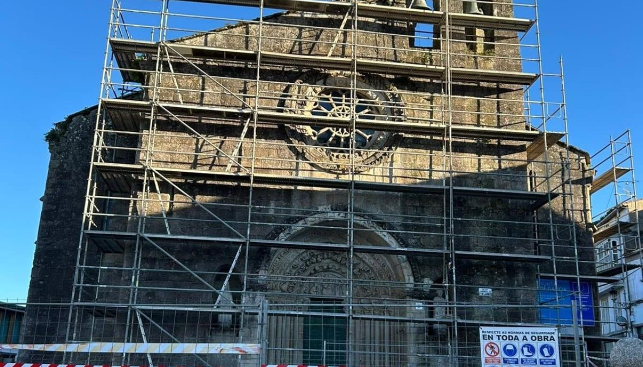 Un andamio en Santa María do Azogue y cuatro hayas en la plaza de la Constitución. En todo el casco histórico, señales y vallas para advertir del inicio de las obras de construcción de sendas áreas verdes en las calles Travesa y Os Cabildos. Así comenzó la ‘metamorfosis’ del entorno monumental, que se alargará durante varios meses, al menos hasta marzo de 2025. Entonces, se completará la intervención de la Xunta en O Azogue, cerrada a cal y canto para para resolver “a entrada da auga na sancristía”, eliminar las humedades y reparar la cubierta, además de para acometer una serie de actuaciones en la estructura de madera que da acceso a la espadaña “para retirar os elementos con podremia” y el saneamiento de los muros, colonizados por la vegetación en las superficies verticales, detallaron desde Cultura de la Xunta.