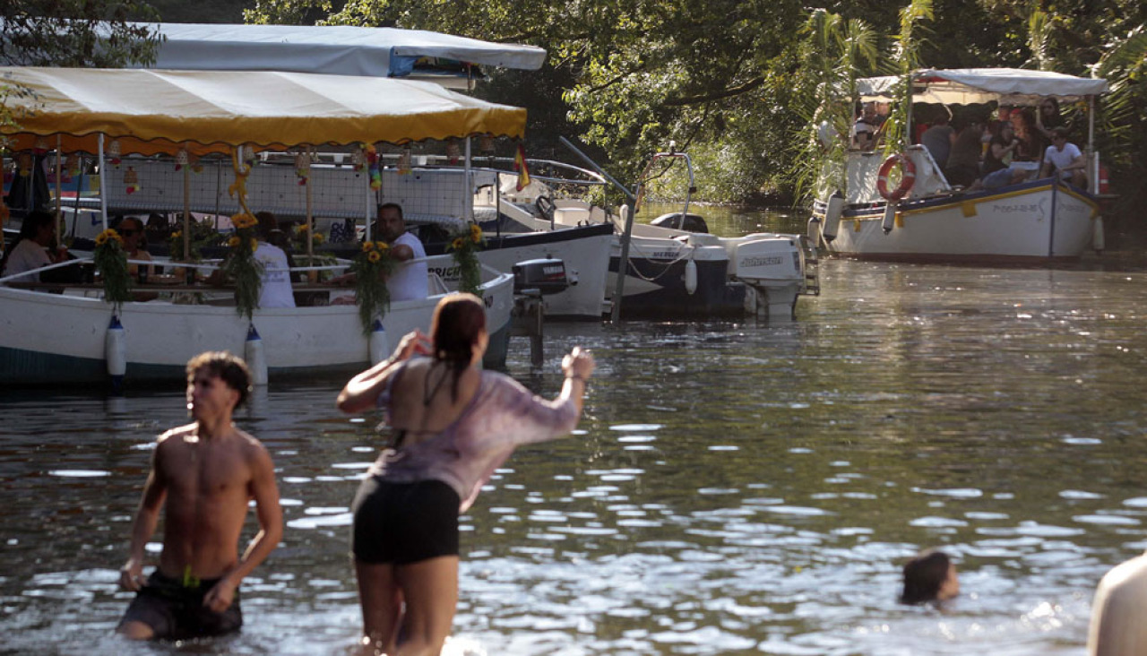 As Calexas mostraron un gran ambiente durante el mediodía, animadas por las charangas NBA y DGT. Después todos se echaron río arriba para llegar al campo, donde también disfrutaron de la sesión de Dj Sebas. Una vez más la seguridad personal de los participantes en la romería fue la principal preocupación del Gobierno local y por ello se estableció un dispositivo especial compuesto por más de cien personas entre voluntarios de Protección Civil, Cruz Roja, Policía Local, Guardia Civil y personal municipal. También se establecieron puntos de servicios médicos en A Tolerancia y el propio campo de Os Caneiros.