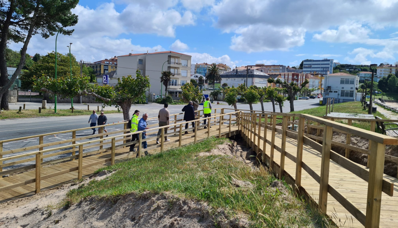 El alcalde, Manuel Vázquez Faraldo, y otros miembros del Gobierno de Miño, acompañaron al jefe de la Demarcación de Costas en Galicia, Carlos Gil, en su visita al arenal para comprobar el correcto desarrollo de las actuaciones, impulsadas por el Ministerio para la Transición Ecológica y Reto Demográfico, que destina 1.720.506 euros a esta intervención, con la que se pretende recuperar y regenerar este espacio, así como proteger el ecosistema dunar con pasarelas de acceso, evitando su degradación.