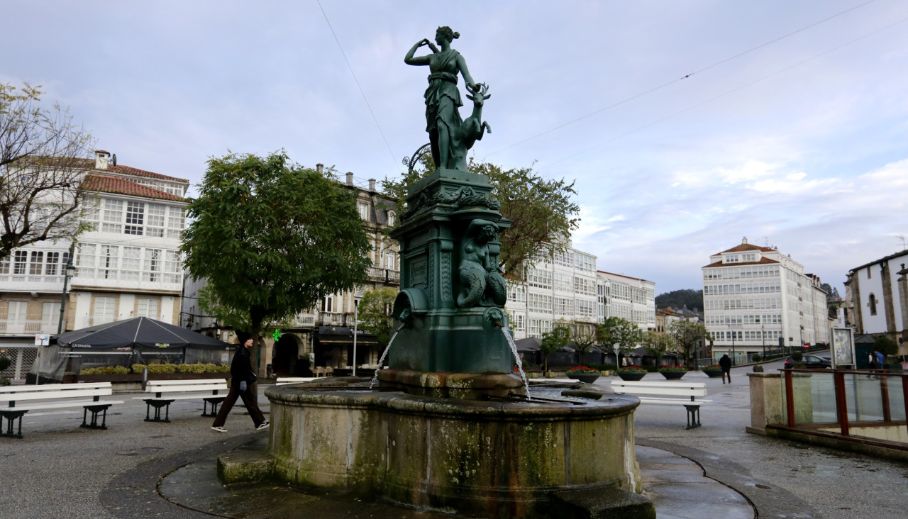 En el conjunto, ‘gastado’ por el uso, por las manos y los pies de varias generaciones de betanceiros que se subieron a ella para beber, destacan las dos sirenas que soportan una peana de guirnaldas sobre las que se asienta la escultura de la diosa mitológica con un ciervo, convertida en emblema de Betanzos.