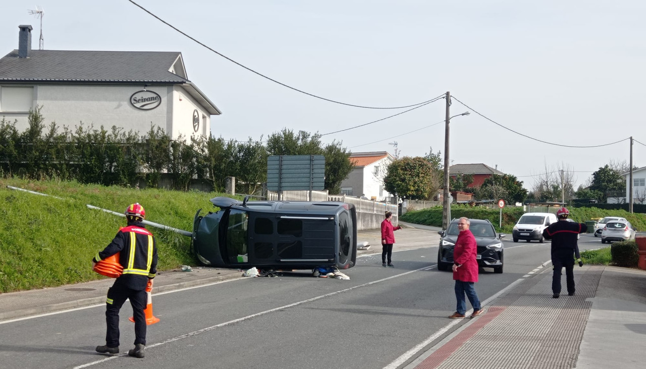 Un conductor salió ileso tras un accidente en la AC-214 (kilómetro 4) a la altura de Volteiro (Cecebre), en el cual chocó contra un poste de iluminación y acabó volcado, según informó el personal del Centro Integrado de Atención ás Emerxencias (CIAE) 112 Galicia.