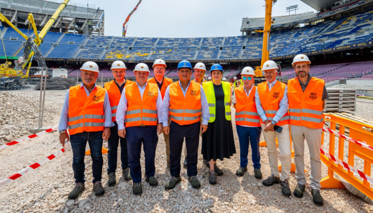 El presidente del FC Barcelona, Joan Laporta, y su junta directiva, han visitado este miércoles las obras del Spotify Camp Nou, justo cuando se cumple un mes de la colocación de la primera piedra y el inicio de las actuaciones.