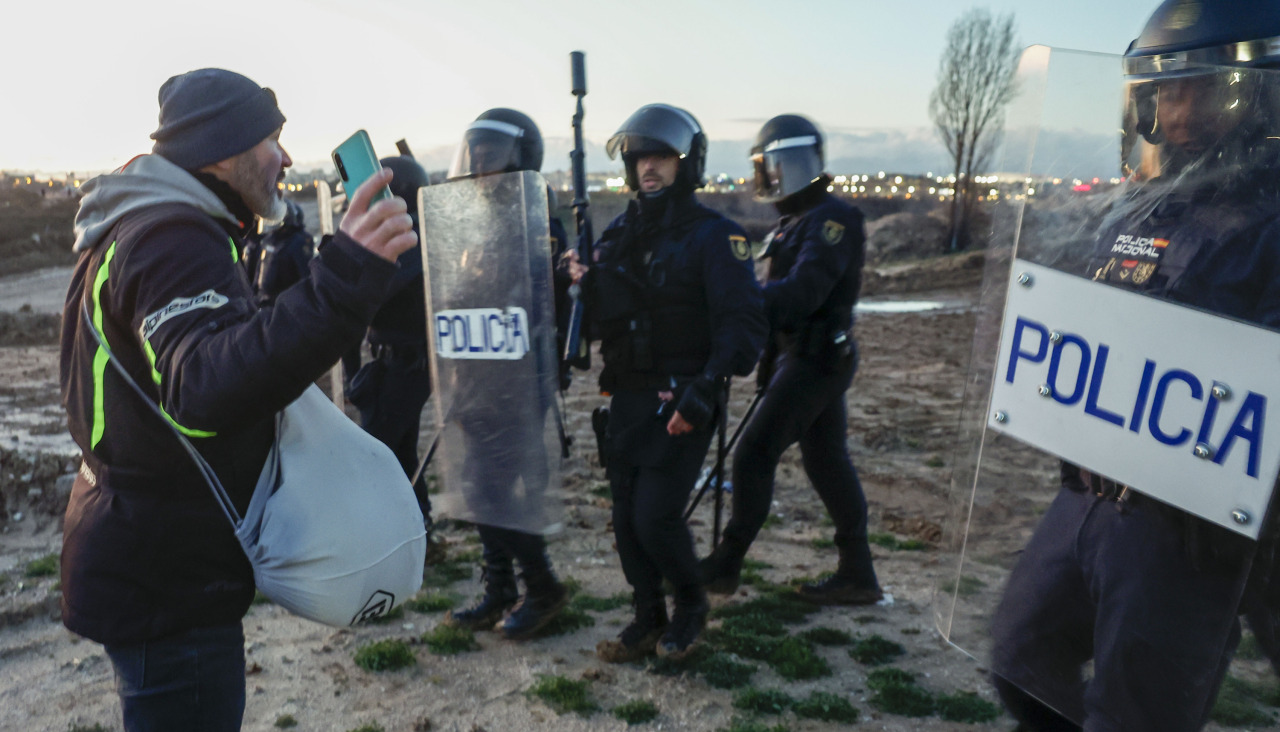 Después de que los concentrados hayan intentando abandonar las inmediaciones del estadio saltándose unas vallas, con la intención de cortar la M-40, los miembros del cuerpo policial han tratado de detenerlos, llegando a resultar varios manifestantes heridos.