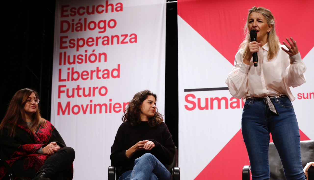 La vicepresidenta afeó a Podemos que aún no respondiese a Sumar “si está de acuerdo” con el mismo “proyecto de país”. “Caminemos juntas, es lo que quiere toda España”, pidió y mostró su deseo de que el partido de Belarra e Irene Montero participe en el acto, afirmando que “no hay ninguna razón” para que no estén. Al mismo tiempo, agradeció a IU, Más Madrid, En Comú Podem, la Chunta Aragonesista o Drago su confirmación de asistencia.