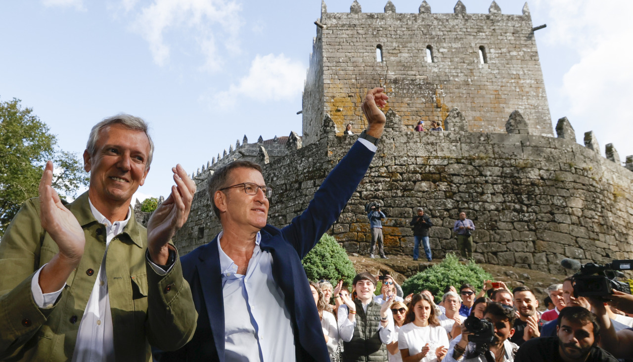 El líder del PP ha estado acompañado en el acto de apertura del curso político a los pies del castillo de Soutomaior (Pontevedra) por sus principales barones autonómicos: los presidentes de Andalucía, Juanma Moreno; de Castilla y León, Alfonso Fernández Mañueco; de Aragón, Jorge Azcón; de Extremadura, María Guardiola; de Murcia, Fernando López Miras, y de Baleares, Marga Prohens. Además, han estado presentes la secretaria general, Cuca Gamarra, el coordinador general, Elías Bendodo, y el expresidente del Gobierno Mariano Rajoy.